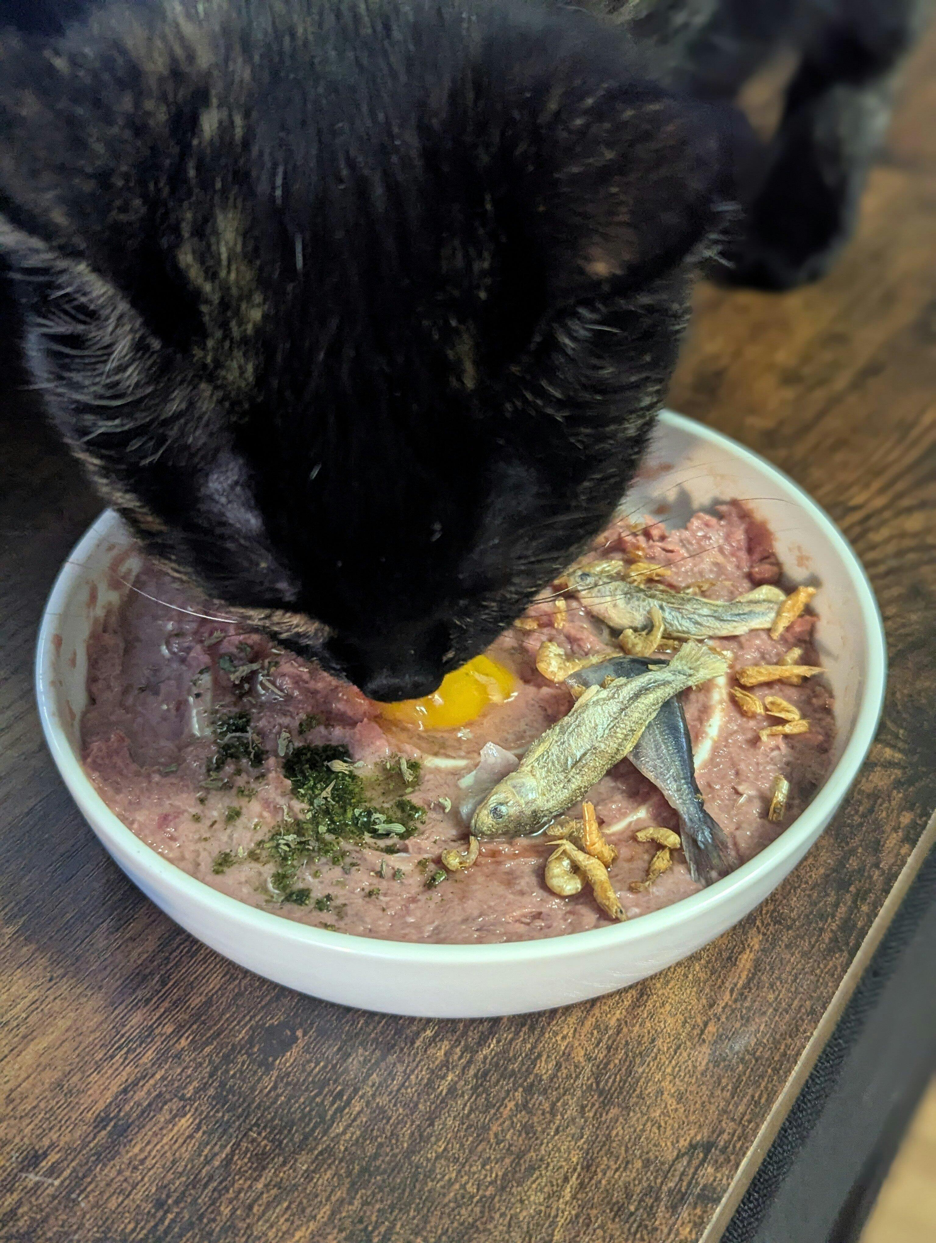 Used to make my own raw with the same ingredient base so its nice to be able to be lazy with it for once but not the best for picky eaters def mix some kibble in