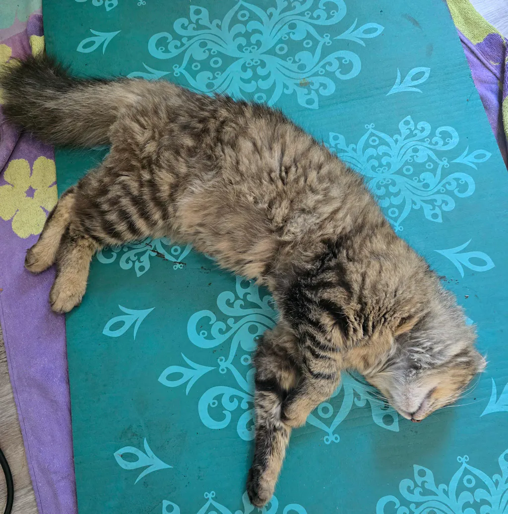 Grey was a stray who chose us. We began feeding him freeze dried, as it was the healthiest option we knew of. I have never had a cat. Next week tried gently cooked. He liked it. As I researched I began to worry about taurine and whether there was enough in the other foods. I found Viva and Grey loves it. I do not have to worry about taurine. Comatose after raw rabbit. On my yoga mat. Because that is what it is for apparently.